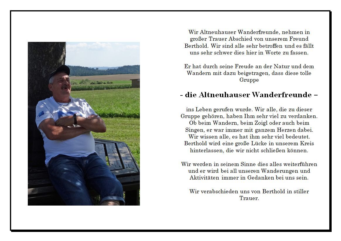 Berthold, der inzwischen von uns gegangen ist, war eine treibende Kraft für unsere Gruppe und fehlt uns in dieser tollen Gemeinschaft.